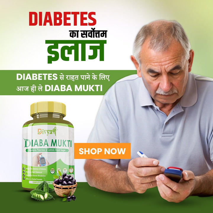 Diaba Mukti is the best ayurvedic medicine for diabetes, made with 100% Ayurvedic herbs to help control blood sugar levels. Approved by the Ministry of Ayush, it also supports weight management, improves digestion, and keeps muscles and joints healthy. It's a natural and reliable choice for managing diabetes and maintaining overall wellness.