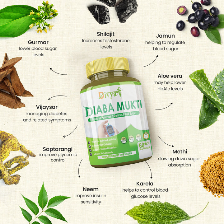 Diaba Mukti Capsules are herbal supplements formulated based on Ayurvedic principles. They work by utilizing natural ingredients to help regulate blood sugar levels and support overall health. The specific herbs in these capsules have properties that may enhance insulin sensitivity, improve glucose metabolism, and reduce diabetes-related symptoms.