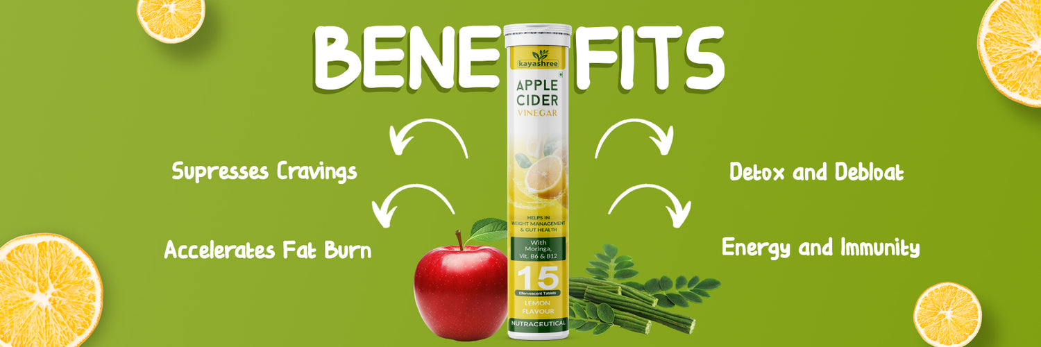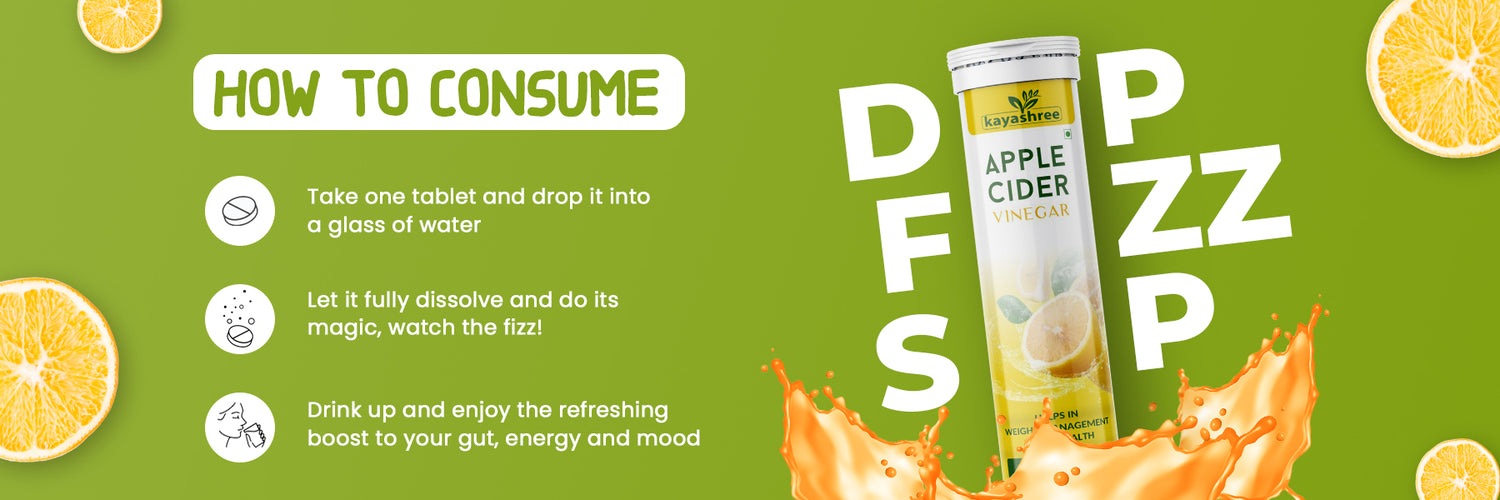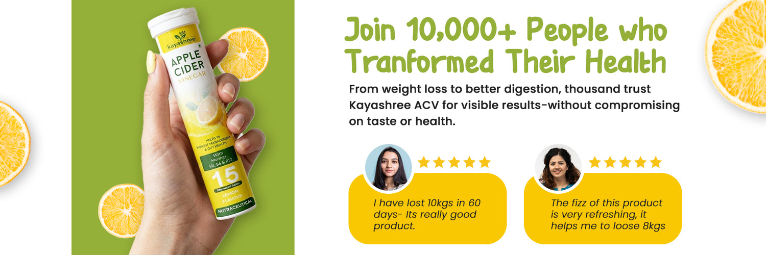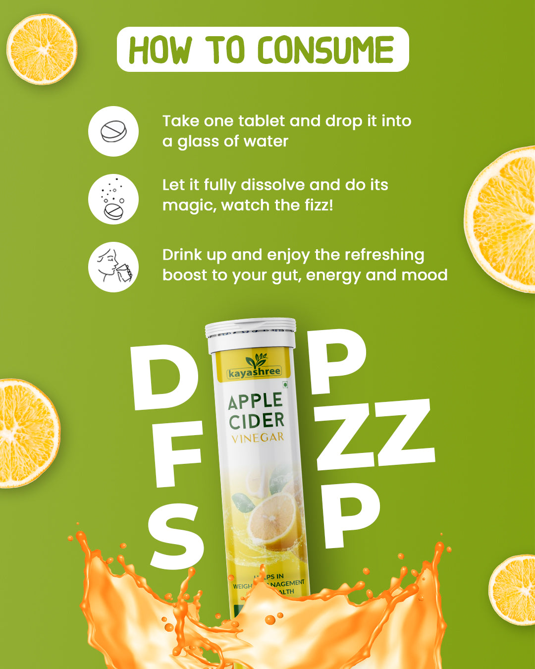Kayashree ACV Lemon Effervescent Tablets are a convenient and refreshing way to include Apple Cider Vinegar in your daily routine. Made with a tangy lemon flavor, these tablets help support weight management, improve digestion, and promote natural detoxification without the strong taste of liquid ACV. The effervescent formula dissolves quickly in water, making it easy to consume while helping the body absorb nutrients effectively. Trusted by millions, it is an ideal choice for those looking for a simple, tasty, and effective wellness solution.