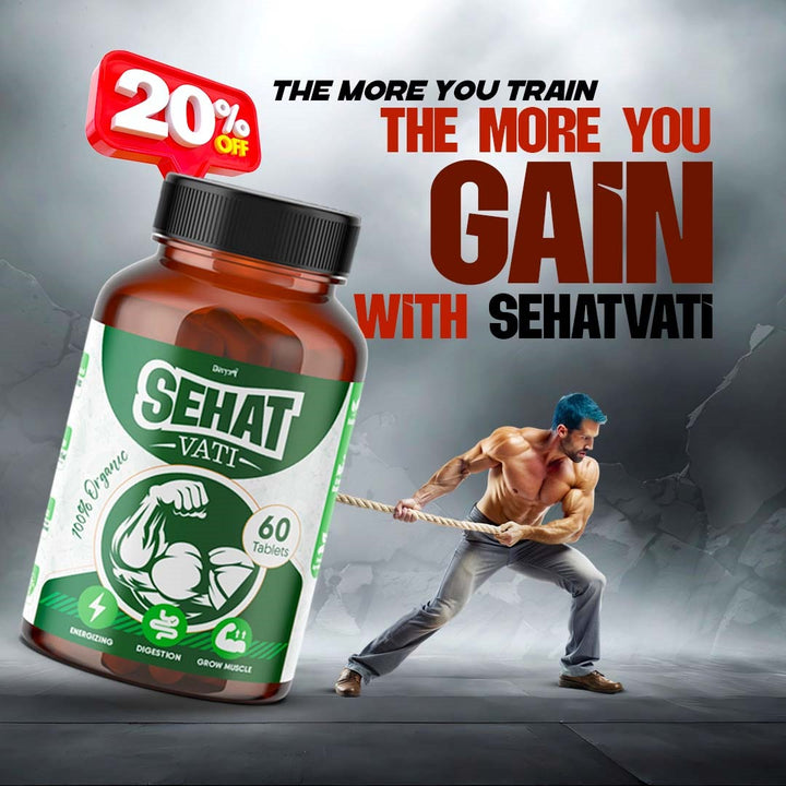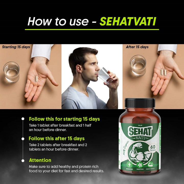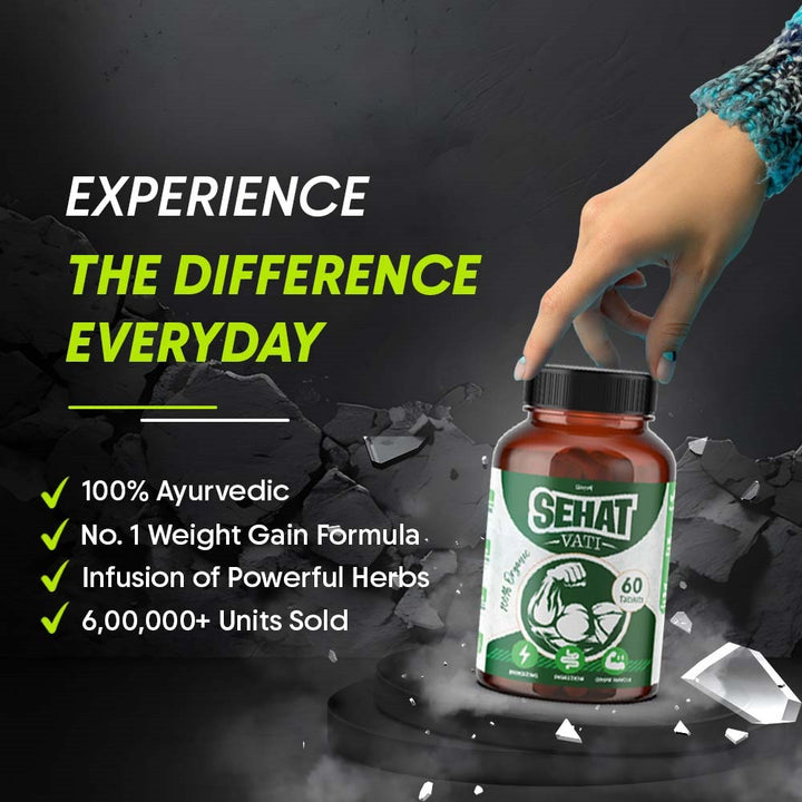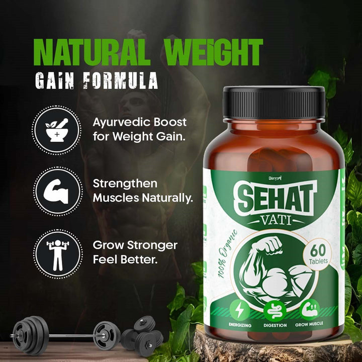 Sehat Vati is a nutritional supplement that helps you to gain weight naturally. It has been scientifically formulated to supply your body with the right amount of nutrients needed for weight gain, enhancing skin and hair health as well.
